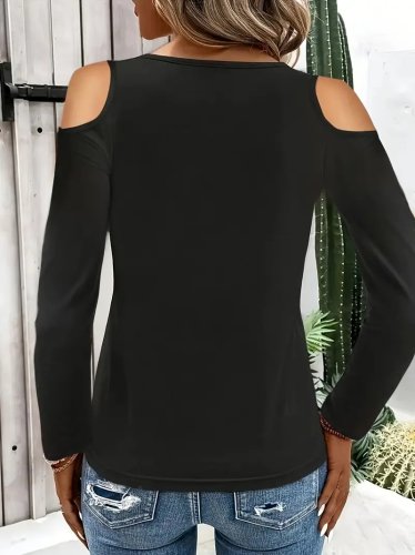 • Kadın omuzlardan açık uzun kollu yakadan halka şerit detaylı viskon bluz