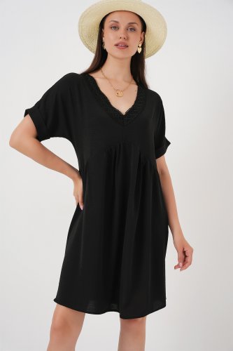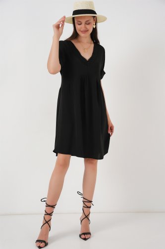 • V Yaka Kısa Kol Elbise 2567 Siyah