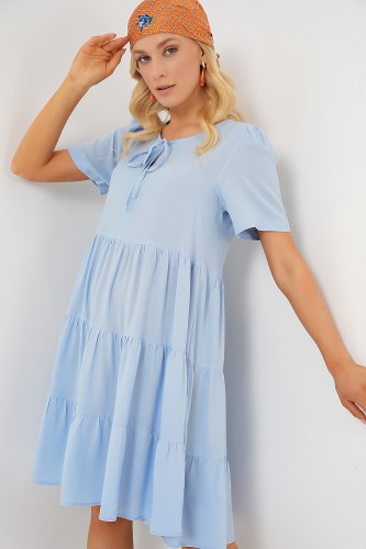 • Kısa Kol Kısa Elbise 2554 Mavi