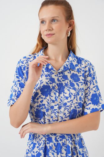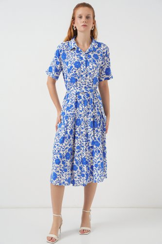 • Kısa Kol Desenli Elbise 2560 Saks