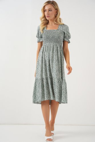 • Kısa Kol Çiçekli Elbise 2556 Mint