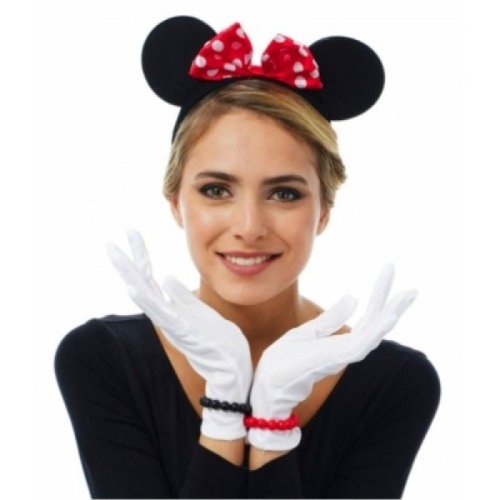 • Kırmızı Fiyonklu Minnie Mouse Tacı ve Beyaz Eldiven Seti