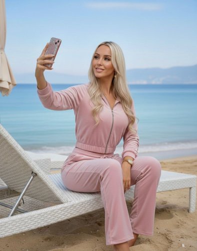 • Kadın uzun kollu kapüşon ve taş işleme detay kadife kumaş ceket pantolon ikili takım