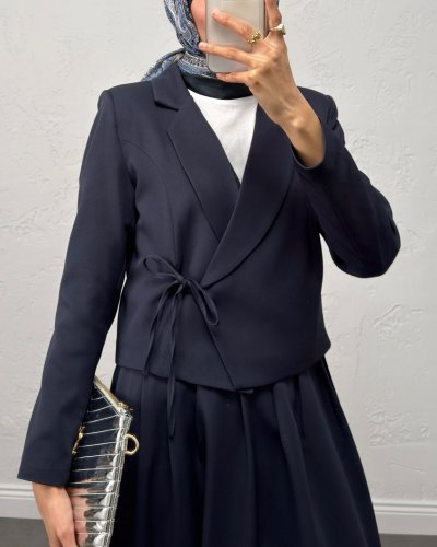 • Önü Bağlamalı Etek Ceket İkili Takım Laci