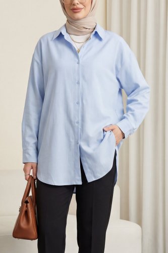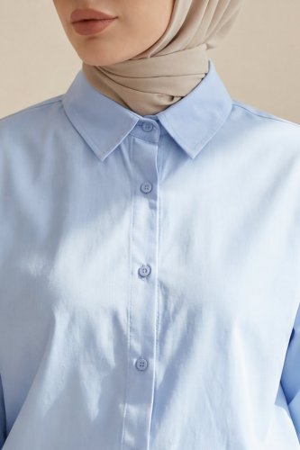 • Düğmeli Salaş Viskon Gömlek Bebe Mavi