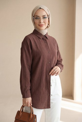 Oval Kesim Düğmeli Gömlek Kahve